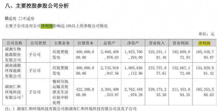公司半年报显示,子公司湖南仁和环境科技有限公司,报告期内营业收入为5.39亿元,净利润为1.85亿元。公司披露的三家主要子公司的营收总计为1,140,172,304.37元,占公司营收比例约为77.16%。
